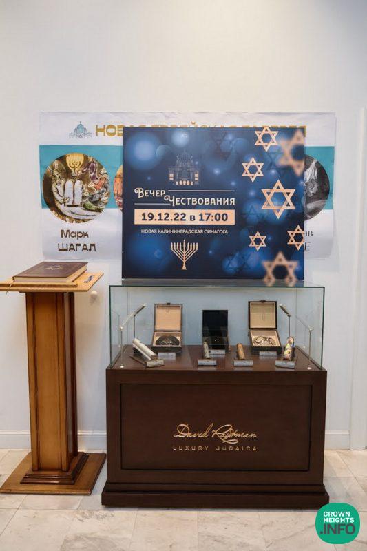 After much planning and great efforts, an exclusive banquet was held on the second night of Chanuka for donors, philanthropists, and important government representatives who gathered together to celebrate the holiday and receive recognition from the city’s Jews for their support in the growth and development of the Jewish community. They were also recognized for their part in the restoration of the large synagogue, which was burnt down on Kristallnacht 84 years ago. Since it has been rebuilt it serves as a pillar of light and prayer to the many Jews who live in Kaliningrad, as well as the many tourists and visitors who come from the neighboring Lithuania and Poland.