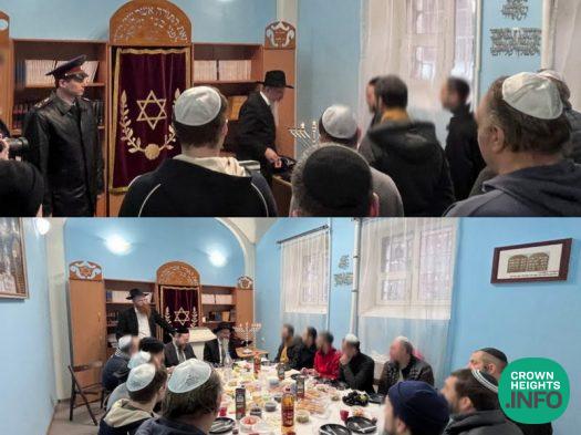 Rabbi Alexander Zilberg and Rabbi Shlomo Dishko, who actively volunteer at the prison all year, presented each of the prisoners with a package containing a menorah, candles, and kosher food and sweets in honor of the holiday.