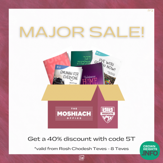 In honor of Hei Teves, Tut Altz will is having a massive sale on all Moshiach Office store products. The deals are running for a week, from Dec. 25, 2022 – Jan 1, 2023, and everything will be 40% off!