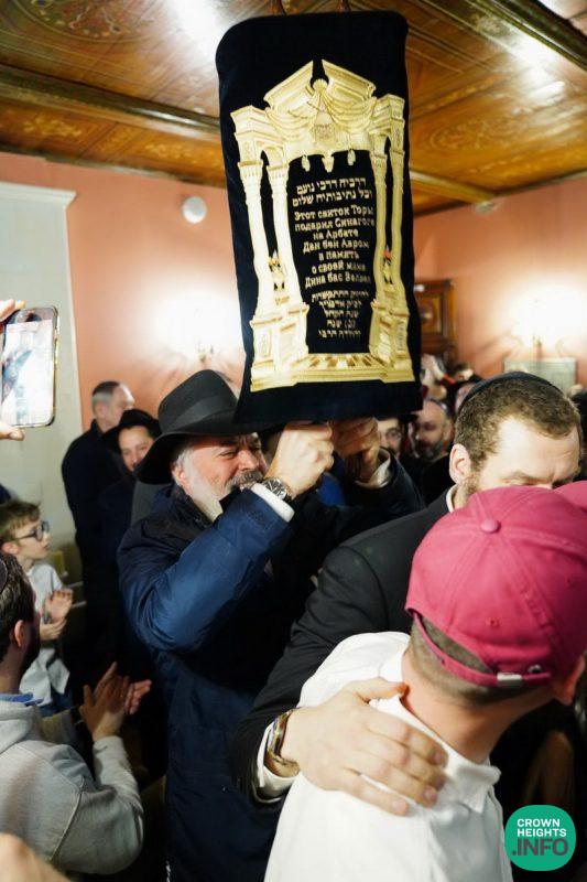 Additional events that took place were the two new Torah scrolls that were completed and escorted to their new homes. The first Hachnasas Sefer Torah was on the first night of Chanuka at the Marina Roscha shul with the Torah dedicated by the Chaturov family. The second was on the fifth night of Chanuka at the Chabad House on Arbat headed by the Shlaich Rabbi Yaakov HaLevi Klein, and was dedicated by philanthropist Mr. Dan Galkin.