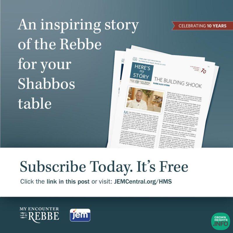 Titled Here’s My Story, the publication began when Rabbi Elkanah Shmotkin, JEM’s director, shared a newly-recorded story with the members of his shul, and they loved it. People shared it with their friends and family, and soon, he began to share an unknown Rebbe story from the interviews of the My Encounter project each week.