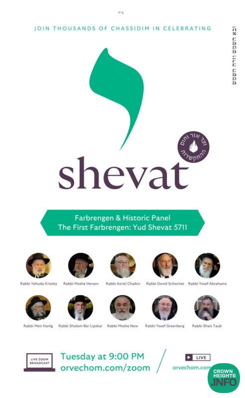 The Farbrengen will take place on Tuesday night, the eve of Yud Shvat, 5783 at 9:00 PM ET.