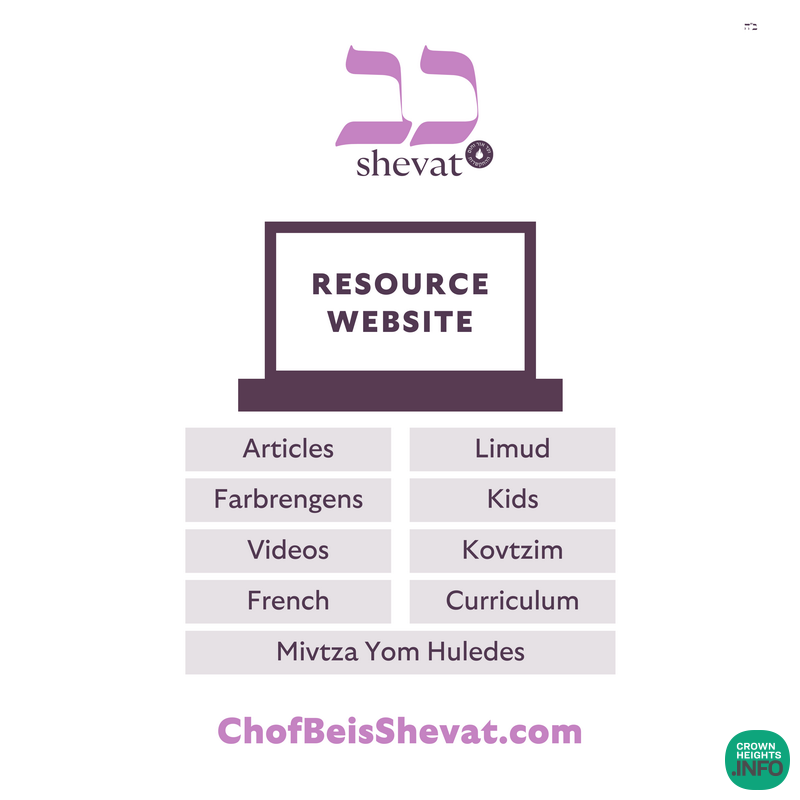 The Chof Beis Shevat resource site includes: Learning material, featured videos, articles in English and Hebrew, videos of Chassidim Farbrenging, and much more!