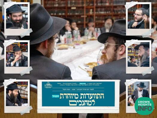With this year being a Hakhel year, many more mechanchim visited Crown Heights for Yud Shvat, and the event was prepared accordingly. The Mechanchim gathered around festive tables in unity with Hakhel spirit.