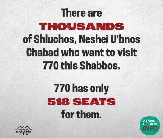 All we need to do כאיש אחד בלב אחד, as one person with one heart[6], is [7]נעשה ונשמע. Without waiting to understand how, we will fulfill the mission that the Rebbe tasked us with, להשתתף בגופו.[8] Each and every one of us must physically participate in promoting and encouraging the expansion of 770.