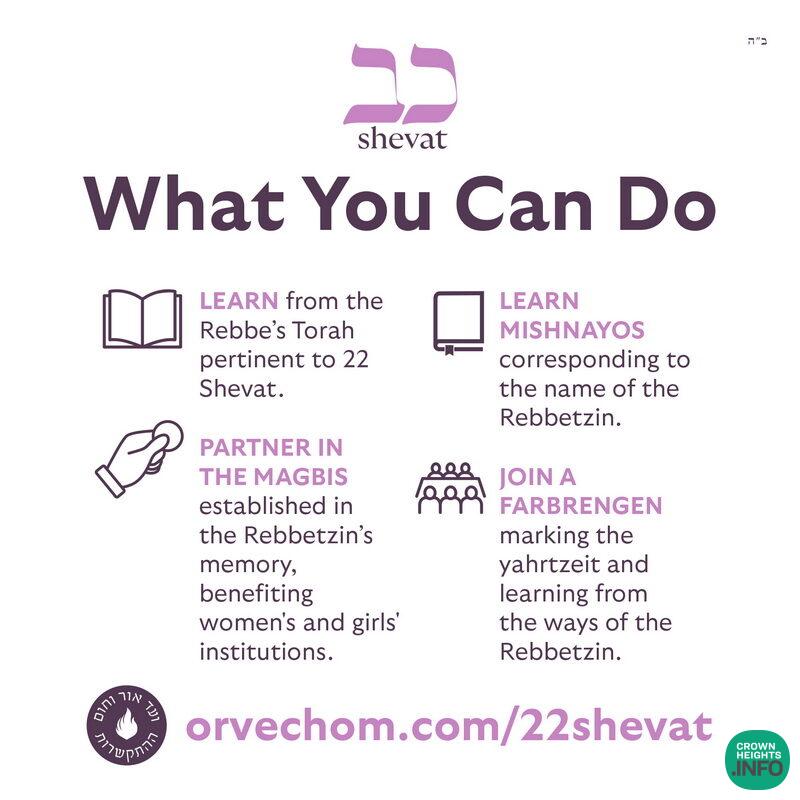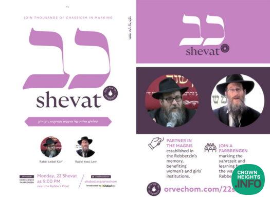 With this in mind, Vaad Or Vechom Hahiskashrus is pleased to invite all Chassidim to the central Chof Beis Shevat Farbrengen near the Rebbe’s Ohel, marking the 35th Yartzeit of our dear Rebbetzin.
