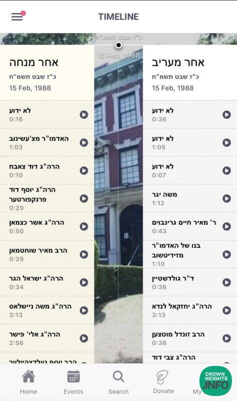 As part of an ongoing restoration project by JEM’s audio app Ashreinu.app, now focusing on the years 5748 – 5752, the recently discovered audio reels of the events from those years are being transferred, restored, organized and published. Thanks to the participation of many in a crowdfunding campaign, many months of audio from 5748 have already been published. These reels, the original recordings of these events, contain audio that is both clearer and more complete than other previously available versions, and are being published alongside word-for-word Yiddish transcripts.