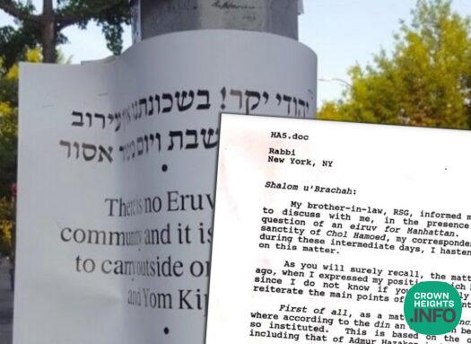 An article by Rabbi Eliyahu Uminer, where he delves into a comprehensive analysis of the letter written by the Rebbe. In response to Rabbi Nochum Zajac’s recently published op-ed where he published an answer from the Rebbe concerning the Manhattan Eruv. The article highlights the following points: