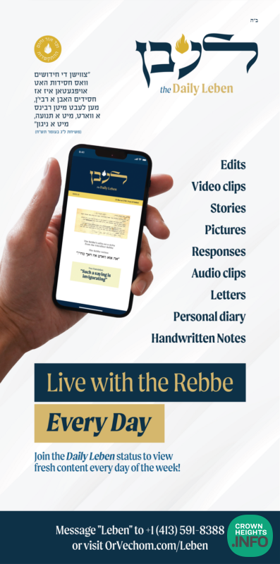 Or Vechom Hahisakshrus is pleased to announce a new Whatsapp status to bring fresh Chassidishe content to your phone every single day! The Daily Leben status will feature Letters & Handwritten notes from the Rebbe, Pictures of the Rebbe, Personal diaries of Chassidim, Video & Audio clips, Stories, and much more!