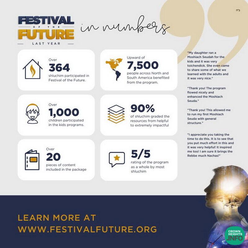 The Festival of the Future package is valued at $430. It is available for Shluchim for $90.