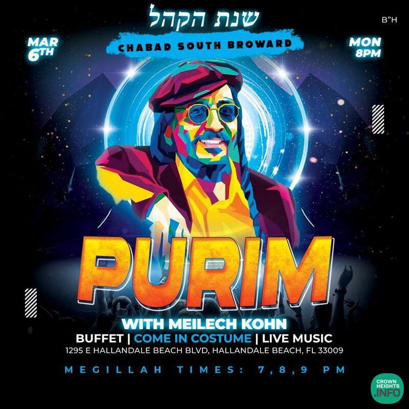 To help Chabad of South Broward’s “Mivtzah Purim With a Shturem”, numerous Dollars of the Rebbe will be raffled Monday night during the Purim Hakhel Musical Event featuring Meilech Kohn.