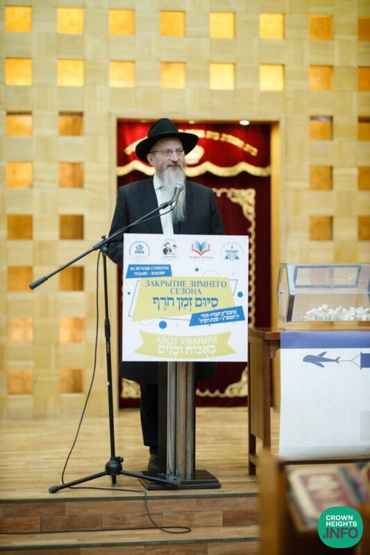 As the winter season comes to an end, and with Shabbos now ending later, a grand kinus was held at Moscow’s Marina Roscha shul for fathers and sons who regularly participated in the special “Avos U’vanim” program throughout the winter. Chief Rabbi of Russia Berel Lazar was there, and after walking through the shul, amongst the fathers and sons earnestly immersed in learning, he gave the keynote address for the evening. Rabbi Lazar encouraged the students to continue applying themselves to learning the holy Torah, both at home, and at shul, and to be lamplighters who are shining examples for others. He also encouraged them to initiate study partnerships with Jewish children who are not yet familiar with the holy Torah.