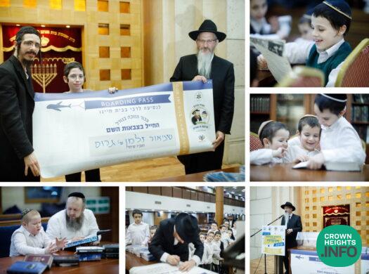 To sweeten the children’s experience, they receive a special nosh, as well as a raffle ticket to enter the weekly lottery for a prize. Additionally, once a year, a ticket to the Rebbe for a father and son is raffled off. This year the winner was Shneor Zalman Gross, son of the dedicated educator, and organizer of the Avos U’Vanim program, Rabbi Yeshayahu Gross. The shul’s gabbaim were happy to present Rabbi Gross and his son with their special prize. The Avos U’vanim program is just one of many meaningful programs arranged by the shul for the hundreds of children who attend it daily, weekly, and on Jewish holidays.