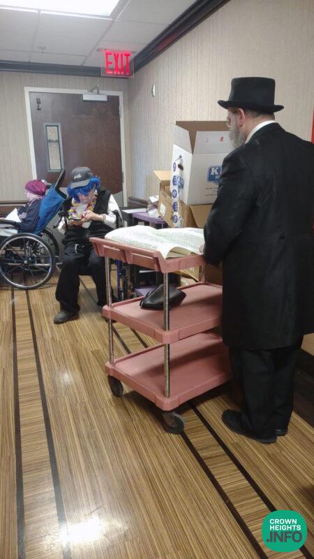 People who couldn’t go to shul to hear Megillah or make it to a Purim party were not forgotten about. Instead, volunteers brought the mitzvos and simcha of Purim to them. Nursing homes, hospitals, and private homes felt the joy as the Megillah was read. A bochur in a clown suit, a family with young children, and girls wearing Shabbos dresses all answered the call as shluchim of the Rebbe to bring the simcha of Purim to as many Jews as possible.