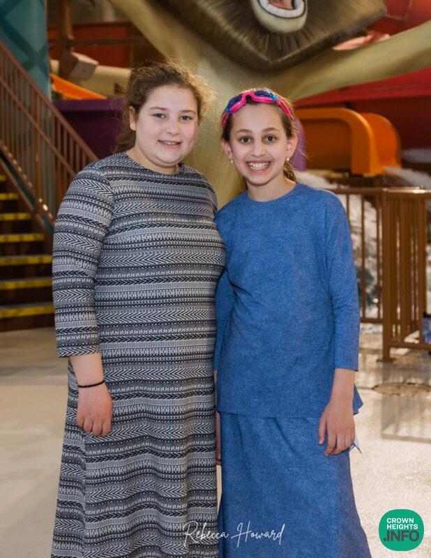 The time spent on the buses was equally fun as the girls took the opportunity to say Chitas, farbreng, sing and make new friends. Arriving at American Dream Mall, base commanders and head counselors ran spontaneous Hakhel rallies in the rain before entering the water park – making a big Kiddush Lubavitch. The girls were thrilled to take over the water park and they were accompanied by music, singing and cheering.