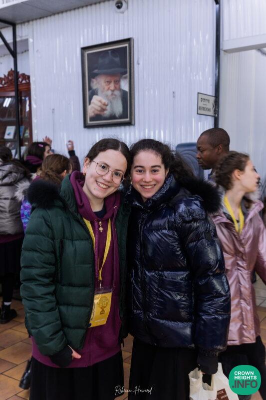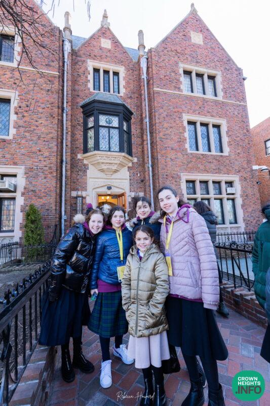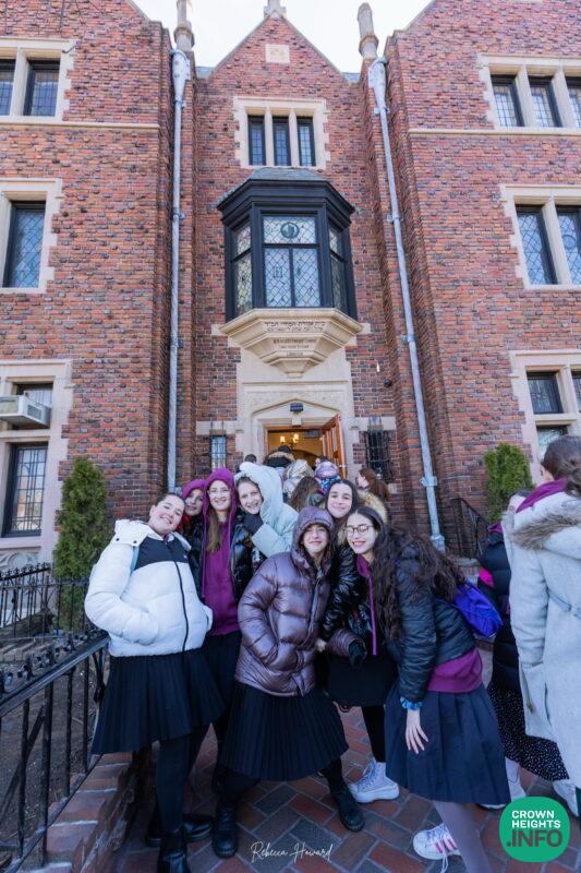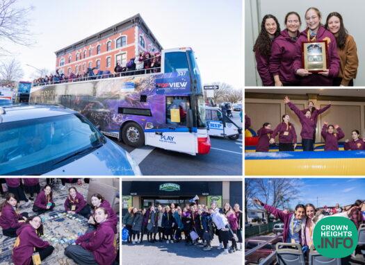 Open air buses transported the girls back to Crown Heights with much cheering and excitement. The girls visited the Rebbe’s room and davened Mincha in 770.