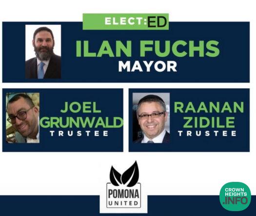 A party of three Frum candidates running under the banner of Pomona United won a landslide victory Tuesday to take the Mayorship and two trustee slots in the Village of Pomona, NY.