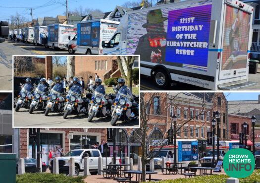 The bochurim of Yeshivas Bais Dovid Shlomo of New Haven began their parade Monday escorted by the New Haven Police Department as they traveled the local streets spreading the message of the 121st birthday of the Lubavitcher Rebbe. Then the bochurim and Mitzvah Tanks spread out, putting on Tefillin and handing out Matzah to the many Jewish residents and students of the city and beyond. The tanks travelled far and wide, visiting cities across Connecticut including Stamford and others.