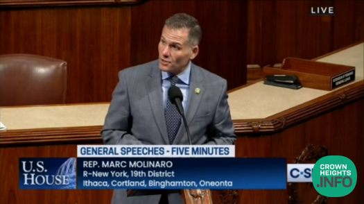 On the floor of the US House of Representatives, Marc Molinaro, the United States Representative for the 19th Congressional District of New York, recognized April 2nd as Education and Sharing Day in honor of the Rebbe’s Birthday on Yud Aleph Nissan.
