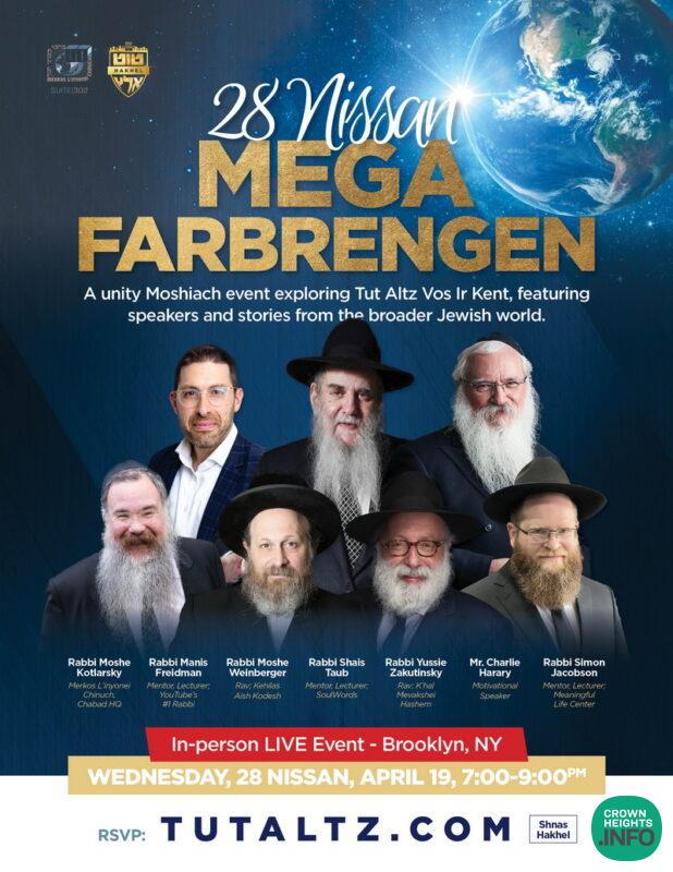Ahead of 28 Nissan, the Moshiach Office has unveiled plans for a grand unity farbrengen to be held in Crown Heights on 28 Nissan, 19 April, billed as The Unity Mega Moshiach Event. Uniting speakers from many segments of the Jewish community, the evening of Moshiach inspiration aims to highlight how the shared hope of Moshiach serves as a unifying force across the spectrum of contemporary Jewish communities.