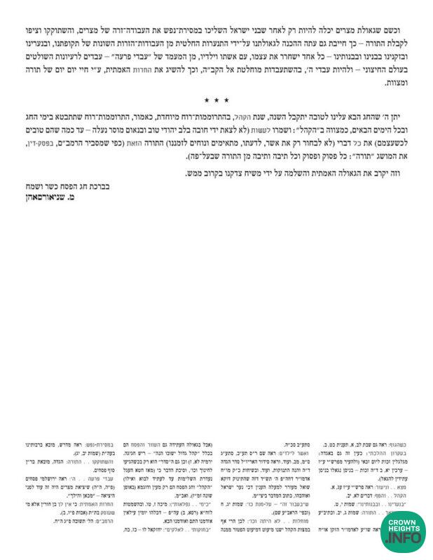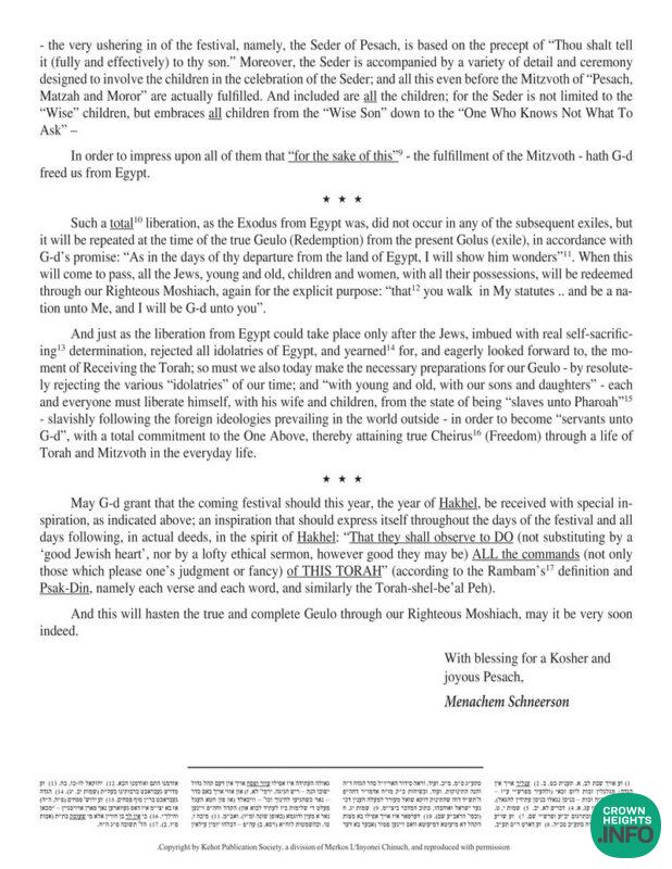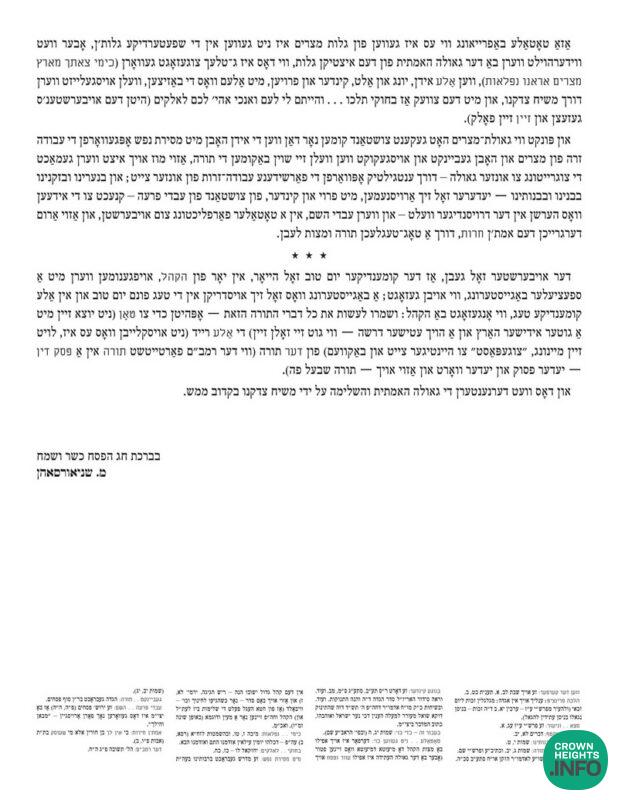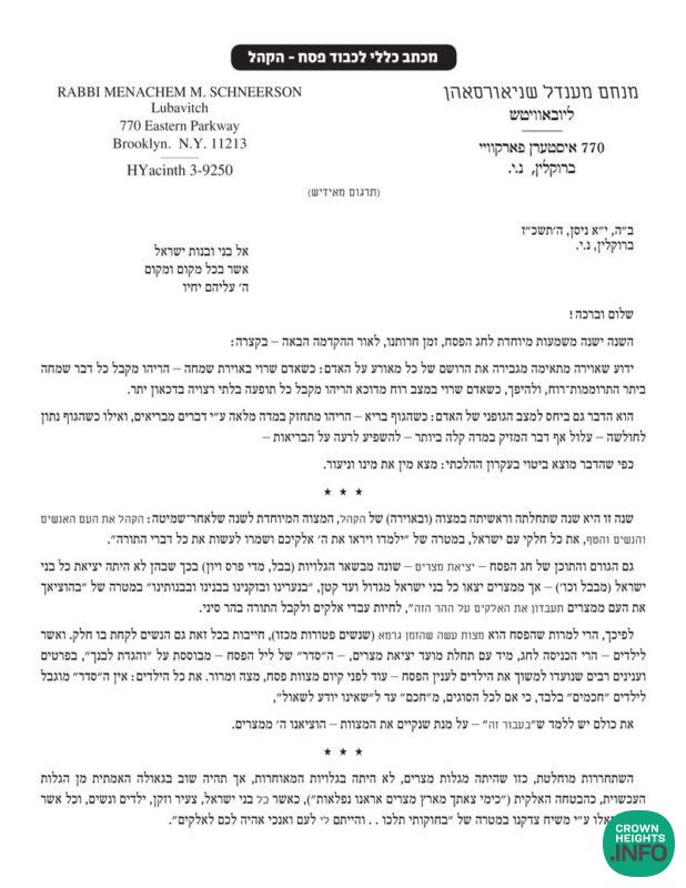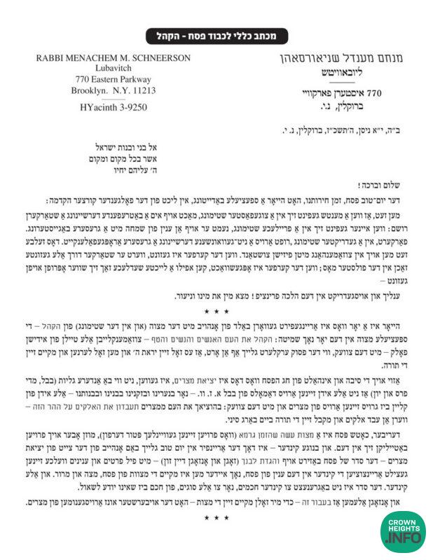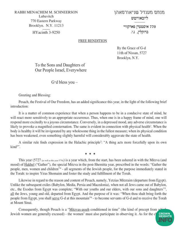 Courtesy of Kehot Publication Society, we present the letter that the Rebbe sent to the community for Pesach תשכ”ז, a year of Hakhel.