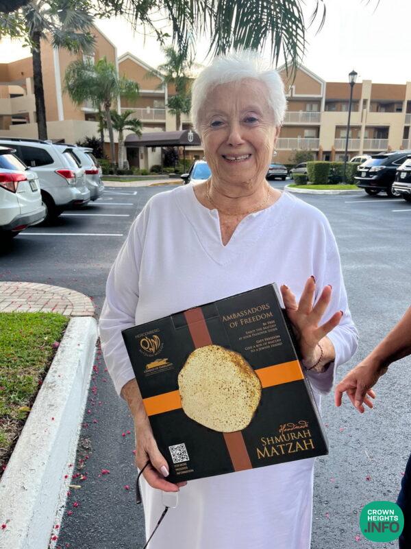 The Ambassador of Freedom program has touched the lives of countless individuals through the simple act of sharing matzah. One heartwarming story involves a 98-year-old Holocaust survivor who had not tasted shmurah matzah since her pre-war days in Amsterdam. Ambassador Debbie Gober, former Chair of the Jewish Federation of Broward County personally delivered matzah to the woman, creating a moving connection between generations. “I’ve always believed that an act of kindness, no matter how small, is never wasted. In fact, you never know the impact of that act, a smile, or even a kind word. This matzah mission gave me the opportunity to touch the hearts of so many, brighten their day, make them smile, and in a few cases, took them down memory lane when they celebrated Pesach as kids! Sometimes it takes only one act of kindness to change a person’s life.” Debbie explained about her experience as an ambassador of freedom.