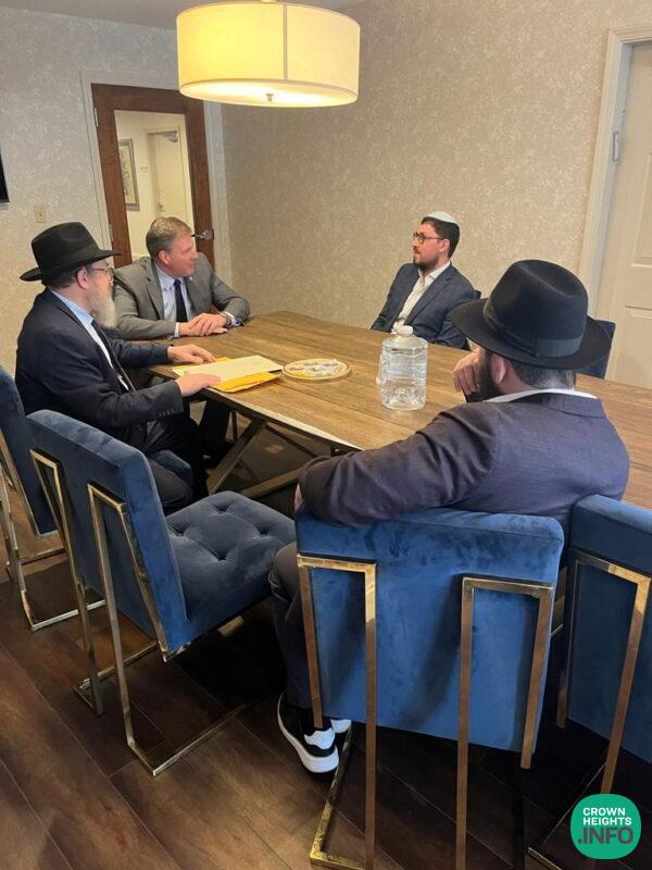 The governor of New Hampshire, Chris Sununu, visited the Chabad Center of Jewish Living in Manchester, New Hampshire, on Tuesday, April 4th.