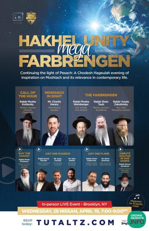 Overall, the Mega-Unity Farbrengen Event promises to be a unique opportunity for members of the Jewish community to come together to explore the power of Moshiach to unite us and inspire us towards practical action. With a diverse line-up of speakers and an engaging program of films and stories, this event is not to be missed.