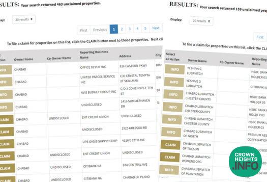 A new website launched showing unclaimed funds in every state has some awesome news for “Chabad”, there are 463 unclaimed listings for Chabad institutions nationally. You never know, some of this money might be yours.