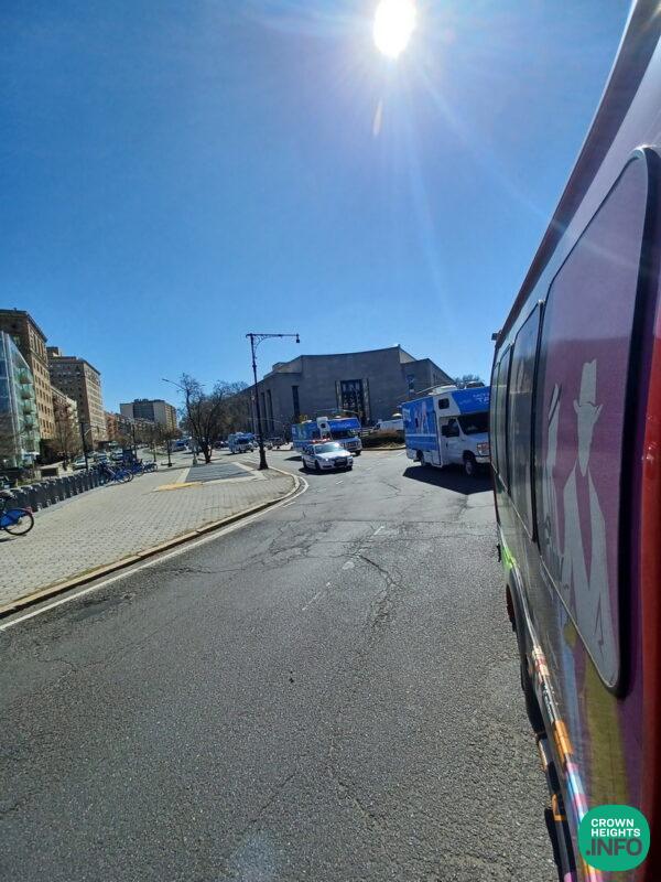The tank goes out weekly with more than a dozen bochurim overseeing more than six Mivtzoyim stands all around – and on – Wall Street in Manhattan. The stands are visited by dozens of Jews each week with bochurim putting tefillin on passersby, distributing flyers on the parsha, giving out shabbos candles, selling Ois Bsefer Torah and inviting Jews on to the tank to make a brocho and share a dvar torah.