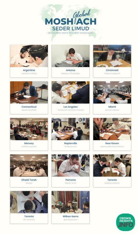 On Wednesday night, Bochurim from 34 Yeshivos around the world united in a Moshiach Chidon learning initiative, demonstrating their commitment to promoting learning about Moshiach and fostering Achdus among yeshiva Bochurim worldwide. As the Rebbe said, Achdus between Chassidim will lead them towards the Geula.
