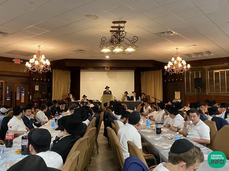 Rabbi Y. L. Schapiro, Rosh Hayeshiva, made the Siyum on the Rambam, and explained the Rebbes Chidushim on the last Halochos of Mishne Torah.
