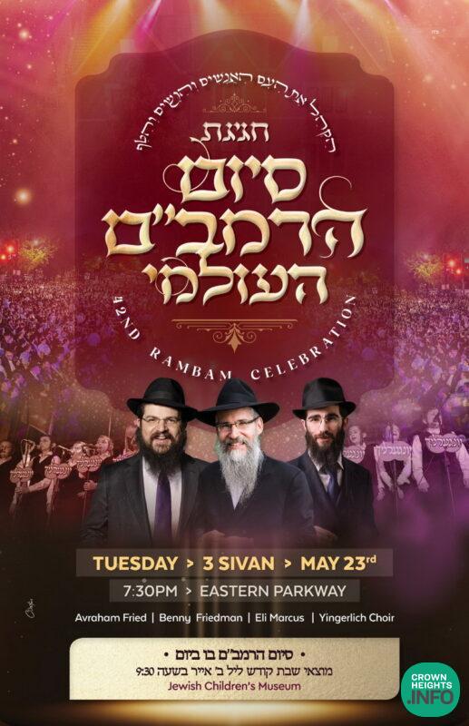 The Siyum HaRambam will take place on Eastern Parkway “In Front of 770,” replicating the historic Siyumei Horambam that occurred on Gimmel Tammuz 5781 and Lag B’omer 5782. Renowned Jewish singers Avraham Fried, Benny Friedman, Eli Marcus, and the Yingerlach Choir will perform at the grand musical program after the Siyum, uniting the spirit of the Rebbe and the Rambam in the Year of Hakhel. Leading rabbis and speakers will address the crowd, sharing their insights on the significance of the Siyum HaRambam. The Siyum will also feature multiple video presentations, bringing the teachings of the Rambam to life.