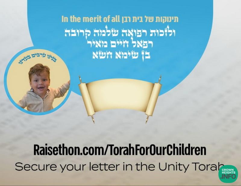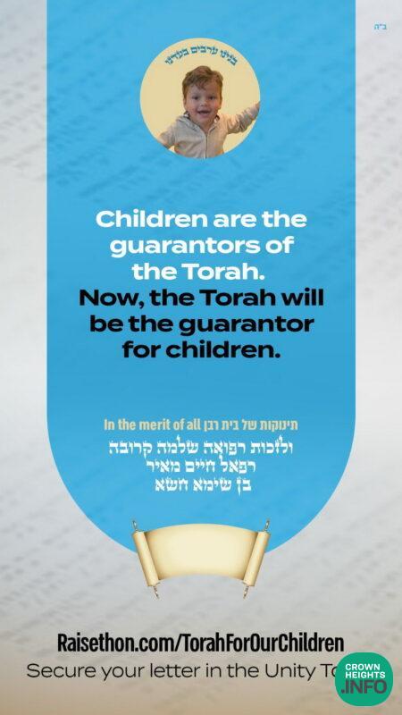 Today, in the merit of all Jewish children, we are commencing the writing of a Torah, which will serve to safeguard the children, just as the children have committed to safeguard the Torah.