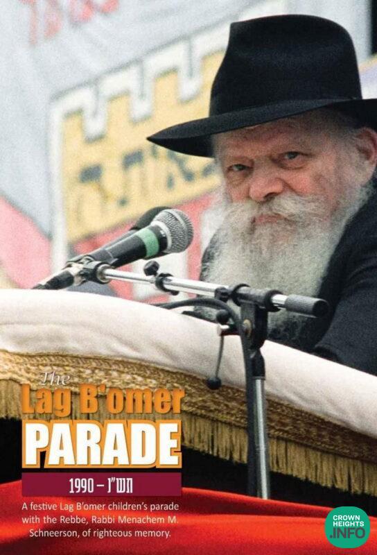 On a specially-built raised platform in front of 770, the Rebbe’s talks on Lag B’Omer 5750 – 1990 were addressed to tens of thousands who had gathered from around the world to be present at the Lag B’Omer parade, a grand salute to Jewish pride.