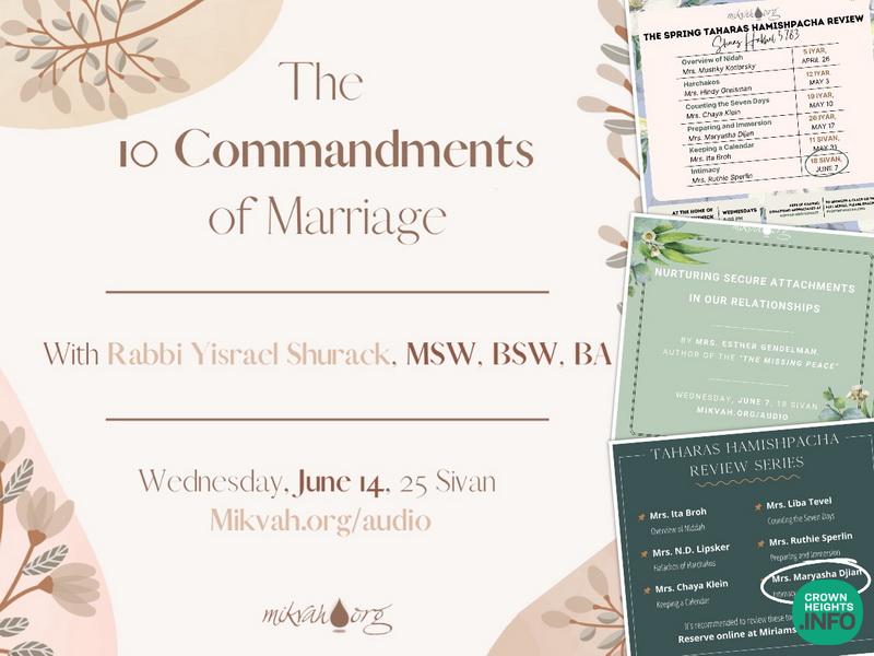 Reminder: The Taharas Hamishpacha Review Series will be ending this week with class 6.