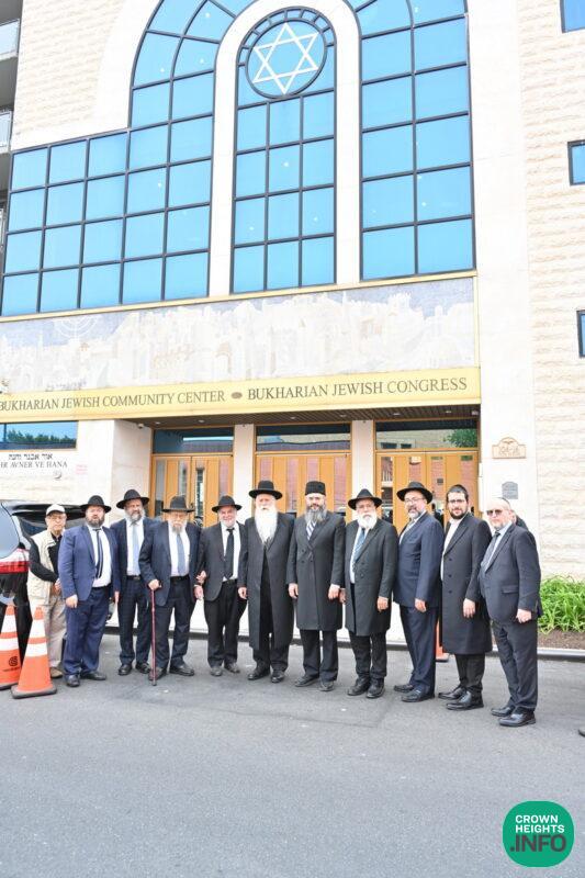 He commenced his visit with Shacharis at the magnificent Bukharian shul in the heart of Queens, and also delivered an eloquent Torah class to the attendees. Subsequently, he graced a festive breakfast in his honor, attended by the local rabbis and community leaders, as well as Rabbi Peretz Steinberg, the eminent Av Beis Din of Queens, who—despite his advanced age—also attended the event.