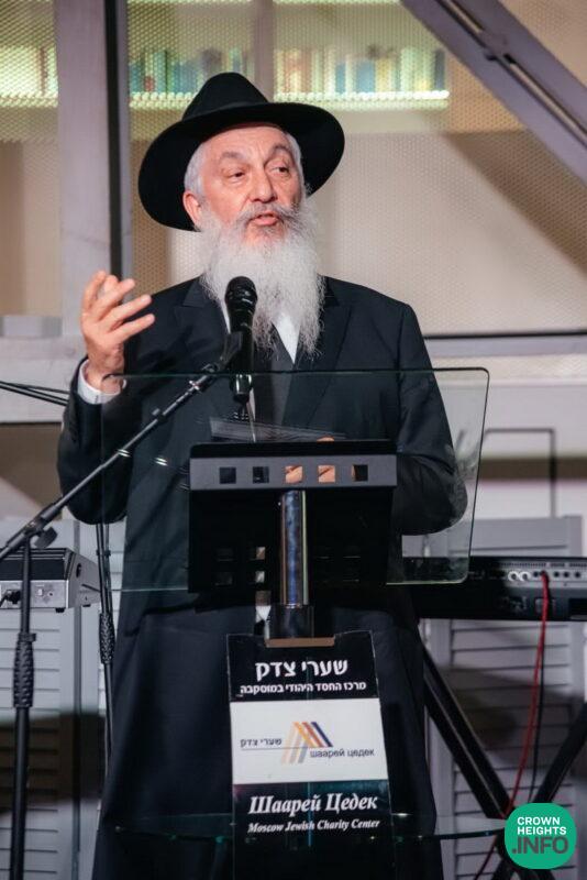 The event was emceed by the director of Moscow’s Jewish Communities, who also stands at the helm of the Marina Roscha Jewish Community Center, Rabbi Mordechai Weisberg. He invited the main speaker, the evening’s Guest of Honor, President of the Federation of Jewish Communities in the FSU, Philanthropist Reb Levi Levayev, who reminisced about his childhood in Samarkand, and about his esteemed father, Rabbi Avner haLevi Levayev, in whose memory the large educational complex of “Ohr Avner” schools was opened in Israel and the USA, providing hundreds and thousands of Jewish children with a traditional Jewish education.