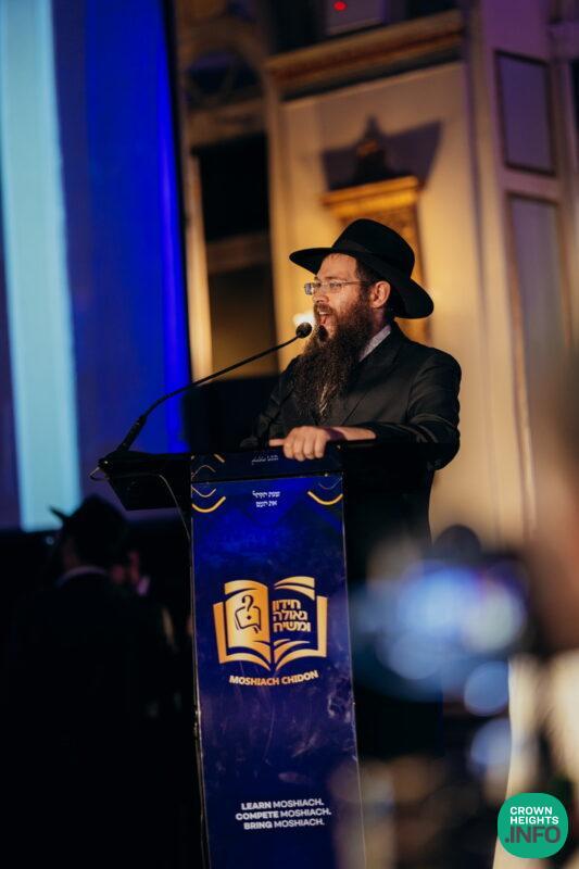 Prominent Rabbonim including Harav Yosef Yeshaya Braun, Rabbi Yossi Jacobson, Rabbi Gershon Avtzon, and others made presentations. Rabbi Aron Ginsburg emphasized the centrality of Moshiach in our lives.