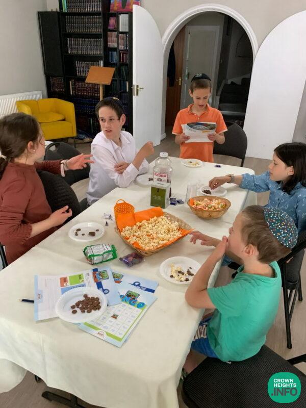 The 300+ Farbrengen-in-a-Box kits, shipped to six continents, were filled with everything needed for an interactive Farbrengen program. Exciting activities included a ‘Traveling to the Rebbe’ themed bingo game, a Seven-Seventy string art craft, and raffle tickets with prizes. The centerpiece was a richly detailed farbrengen booklet replete with stories and discussion topics, providing the young leaders with a comprehensive program to run the show.