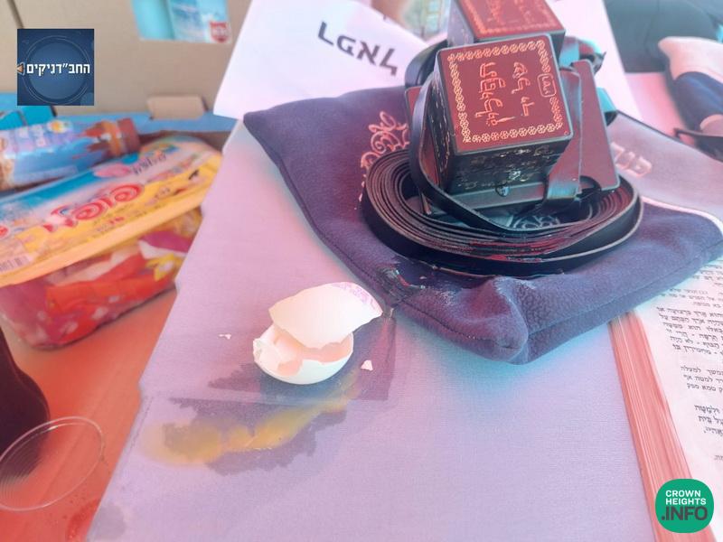 A Tefillin stand, run every Friday by Chabad yeshiva students in the city of Nes Tziona, south of Tel Aviv, was attacked on Friday by a passerby who threw an egg at the stand and the boys who were running it. A complaint was filed with the police.