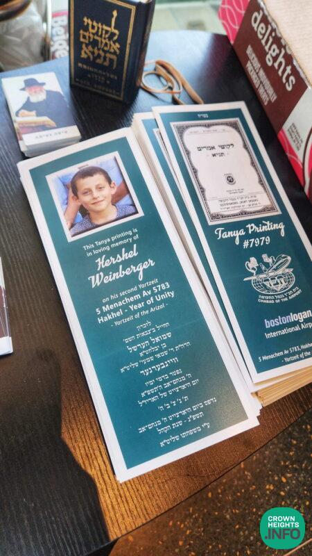 Dedicated by the Weinberger family in memory of Shmuel Hershel Weinberger OBM, whose second yartzeit is Hey Menachem Av, the Yartzeit of the Holy Arizal, ChabadAir hosted the historic Tanya printing at Logan International Airport in Boston, Massachusetts. ChabadAir is run by Rabbi Yossi Rapp and has locations in multiple major airports including JFK in New York City, Miami International Airport in Miami, and Logan Airport in Boston.