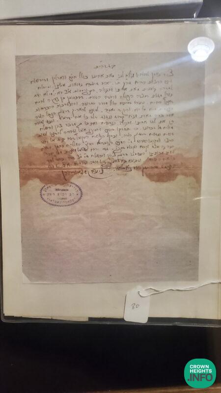 A historic public letter written by the Rebbe’s father is on display in the Rebbe’s Library. The letter was written in 5679 (1919) as the first world war was ending, and the world was in turmoil. Notwithstanding the local challenges in Yaketrinuslav, the many refugees under his responsibility and other difficulties, Reb Levik nevertheless wrote this passionate letter calling upon the Jewish community to support those less fortunate in Eretz Yisroel through Colel Chabad.