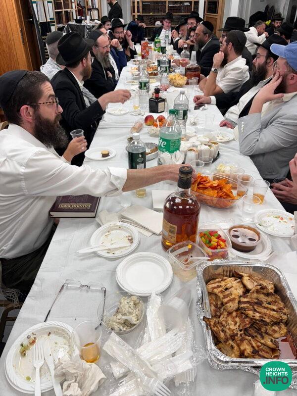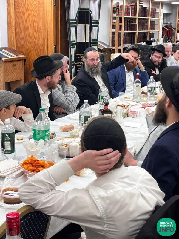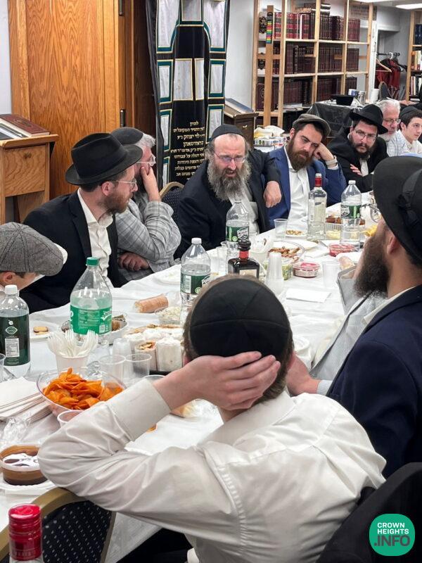 Members of three Chabad Shuls in Pomona, NY gathered in Bais Levi Yitzchok for a special Chof Av Farbrengen with Harav Yosef Yeshaya Braun, a member of the Crown Heights Beis Din.