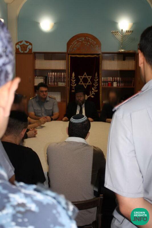 The ceremony was held a few days ago with Prison Chaplain Rabbi Gurevitch, who does so much throughout the year for the benefit of the Jewish prisoners in Russian prisons. Just one example is the establishment of shuls in various prisons enabling the Jewish prisoners to daven, put on Tefilin, attend Torah classes and even farbrengens on special dates in the Jewish calendar. On behalf of the prison services, a distinguished delegation of representatives participated, led by the Deputy Head of the Federal Correctional Service of Russia in Moscow, Matvey Novikov. The guests gathered in the synagogue located in the southern wing of the prison, along with the Jewish prisoners who were very moved to hear about Rabbi Dubin. They also put on Tefilin and enjoyed the kosher meal provided weekly by Rabbi Shlomo Dishko, along with the weekly activities of Rabbi Yitzchak Zilberg, who are so dedicated to the wellbeing of the Jewish prisoners.