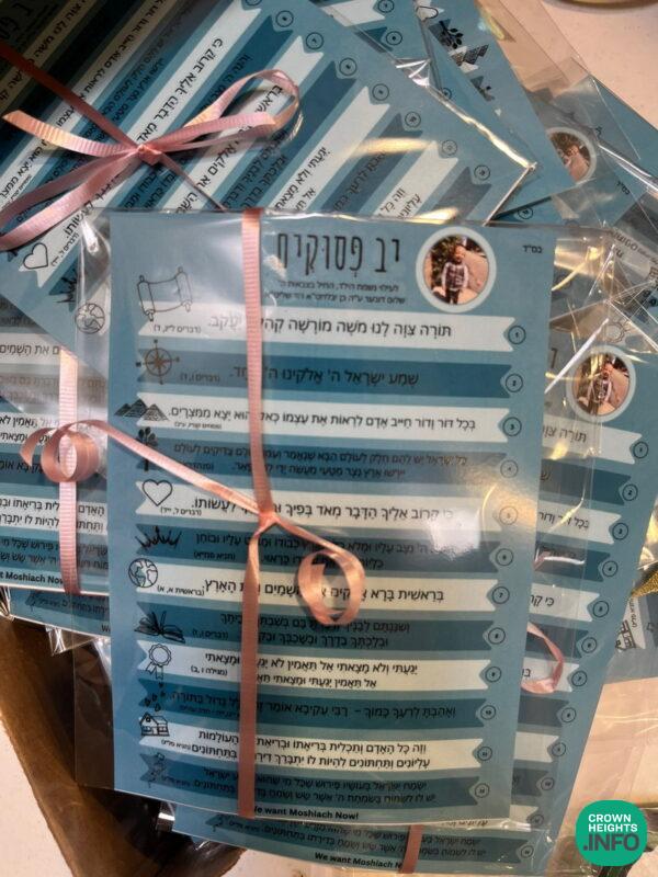 Sholom Ber Markel, who passed away over the summer following a tragic incident, was a devoted soldier in Hashem’s Army. As his mother told during the event, he made a special request of his mother, asking for a 12 Pesukim card.