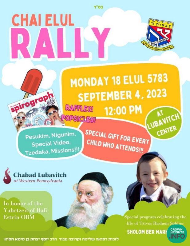 Jewish children from across the Pittsburgh area gathered Monday, Chai Elul, for a Tzivos Hashem Rally in memory of a friend, Sholom Ber Markel OBM.