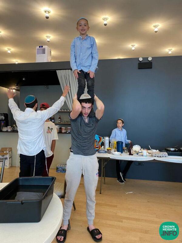 While using The Living Room as their home base, participants in “The Thirteen Day Farbrengen” were able to take full advantage of the in-house facilities, including the game room, rooftop deck, hot tub, sauna, fireplace, commercial coffee bar, ice cream machine, slush machine, crepe-maker, and soda fountain. For almost two weeks, the boys were able to start their days at The Living Room with the Moscowitz family – who live in the same building – playing games, prepping meals, and had opportunities to join rooftop Shabbat Dinners and meet community members who stopped by.