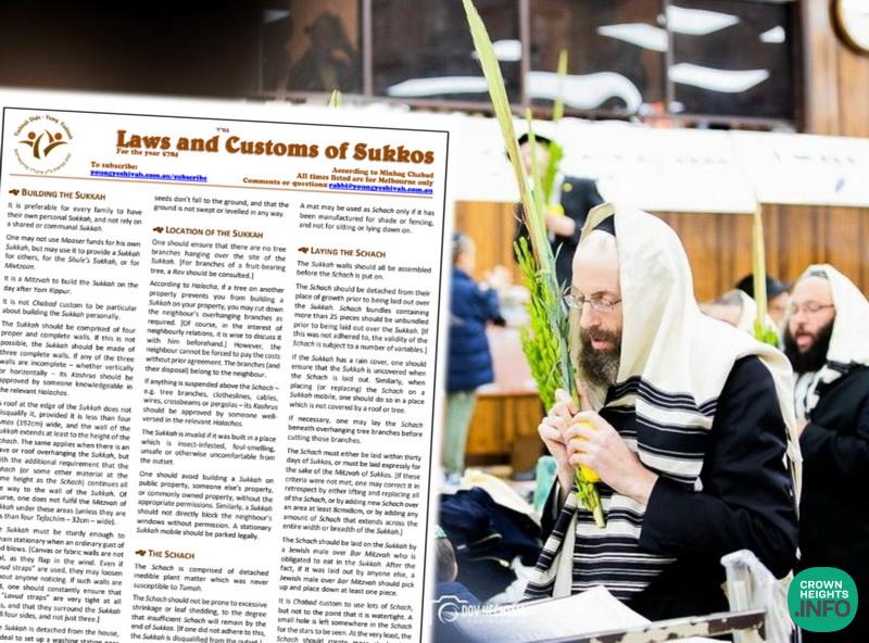 Rabbi Shmuel Lesches, Maggid Shiur in Yeshiva Gedola of Melbourne, Australia, has compiled a guide to the laws of Sukkos (up to – but not including – Hoshanah Rabbah), including the laws of building a Sukkah and selecting the Daled Minim, for the benefit of the wider Lubavitch community.