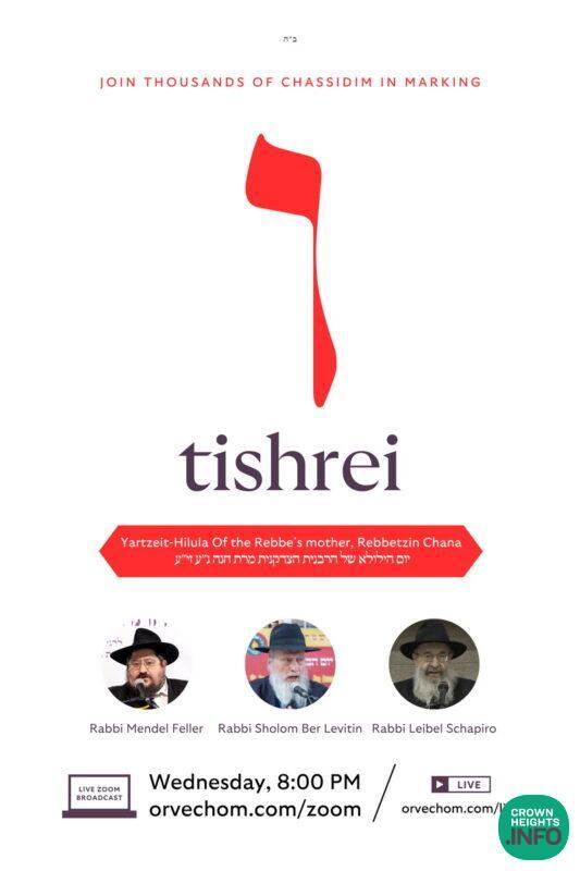 As we near the special day of Vov Tishrei, the Yahrtzeit of Rebbetzin Chana, the Rebbe’s mother, Or Vechom Hahiskashrus is pleased to announce a Chassidishe Farbrengen on Zoom joined by Chassidim from around the world marking Vov Tishrei, this Wednesday evening at 8:00 pm EST.